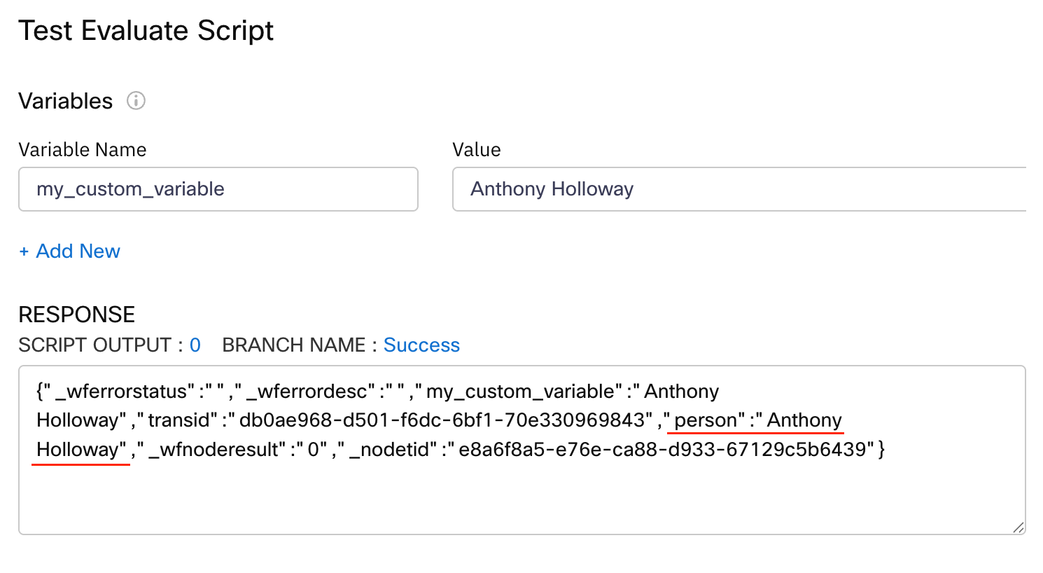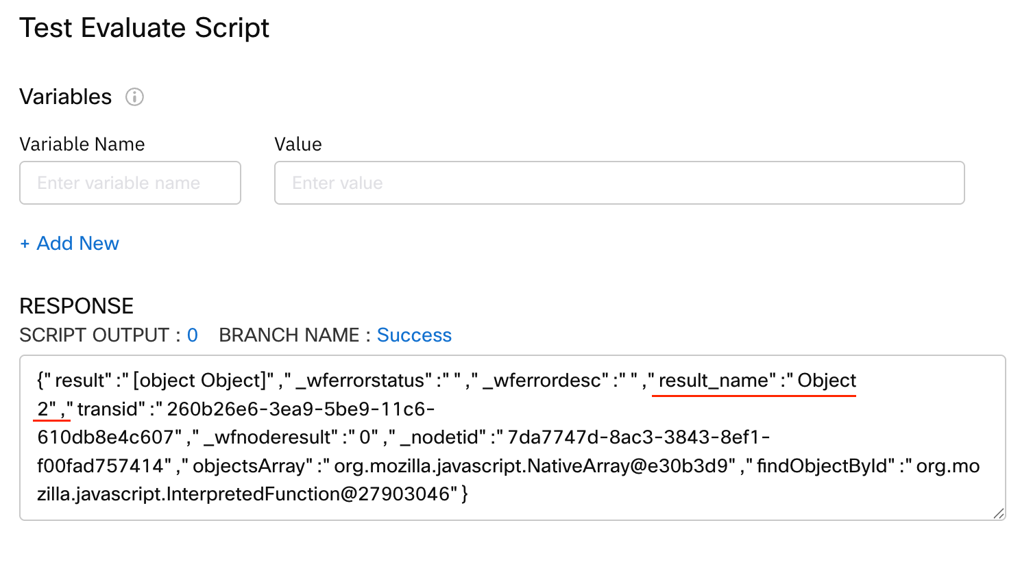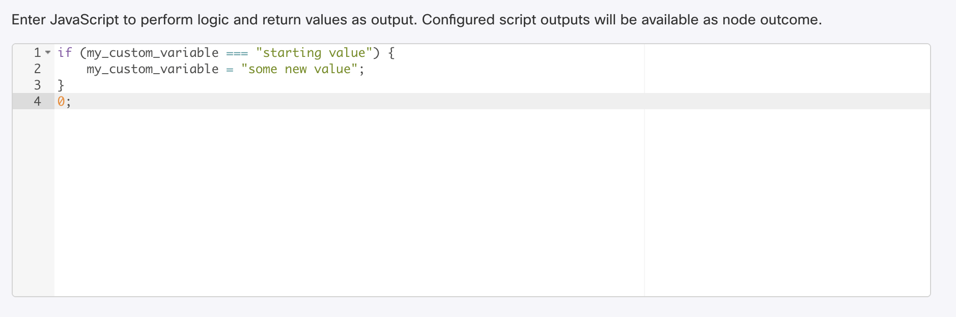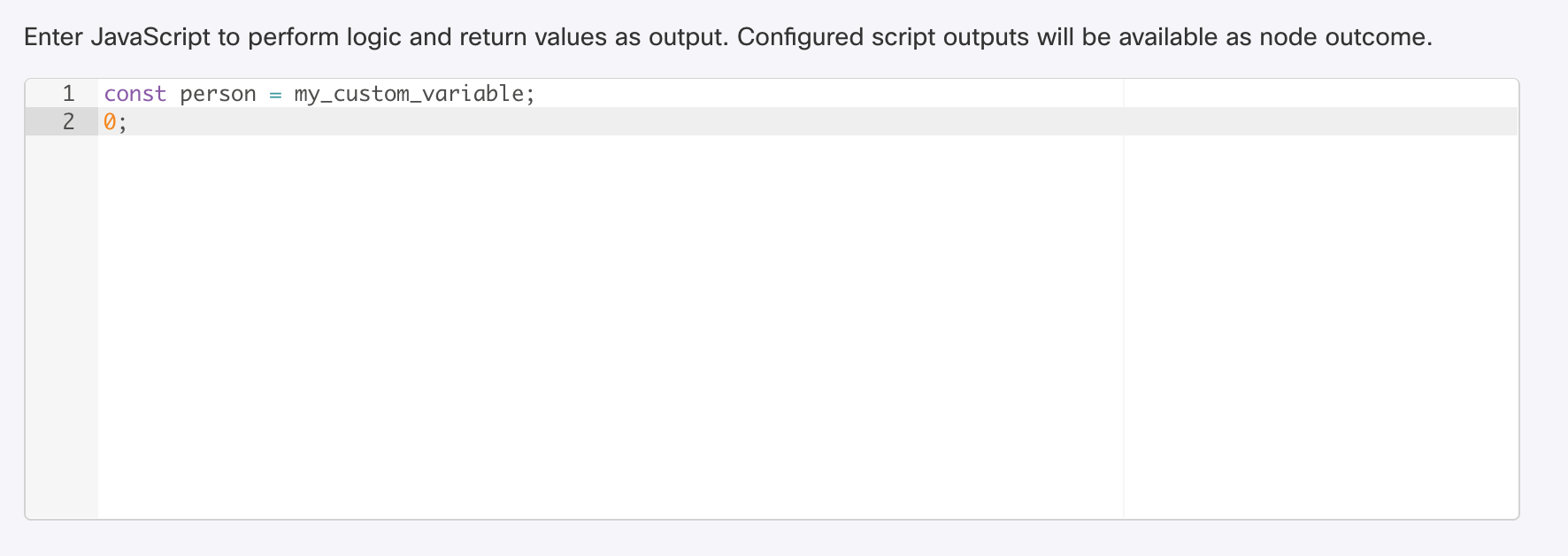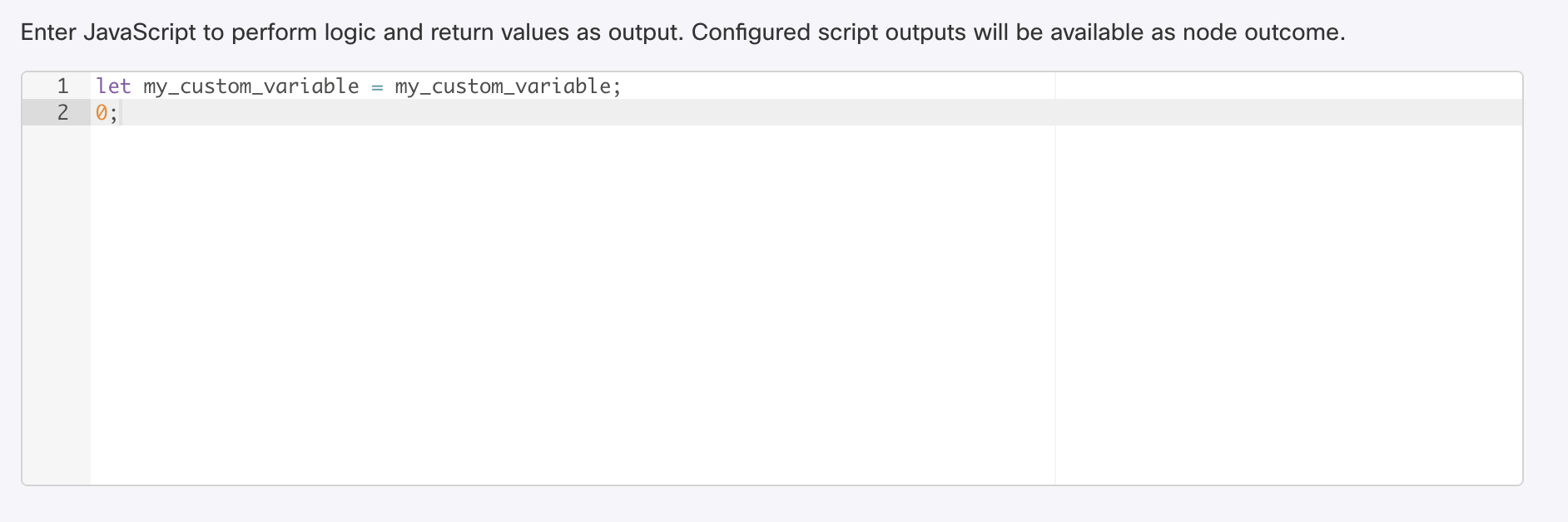 It’s not an easy place to pass anything meaningful, or more than a simple piece of data; therefore, the use of Custom Variabes (for those of you coming from WxCC Flow Designer, these are like Flow Variables), is a great place to store just about anything you want, regardless of the overall outcome of the script (e.g., 0 = Success).