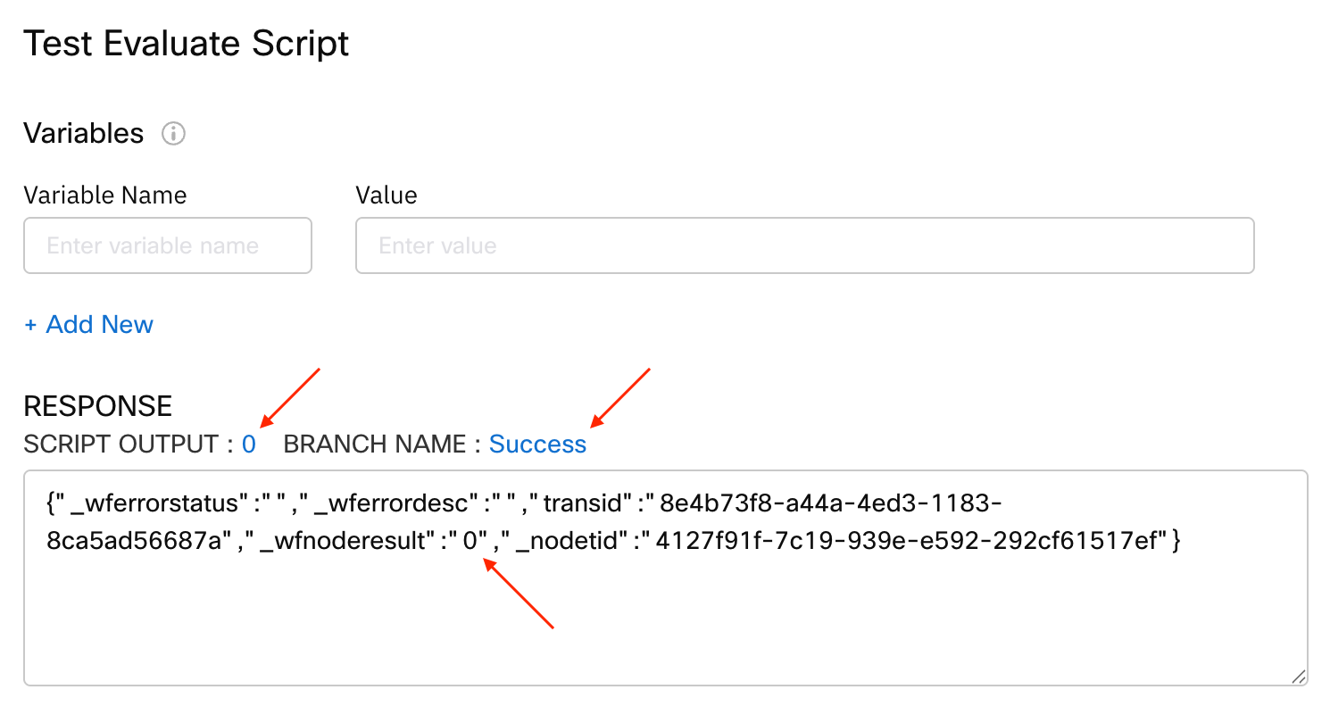 In my case, if I test the bare bones script, I can see that the output is 0 and the matched branch is “Success”.