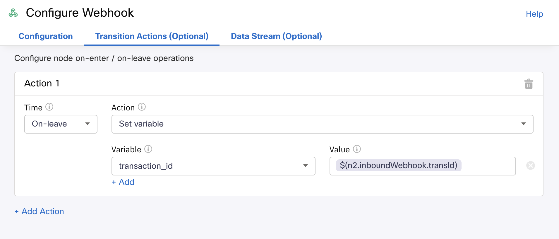 Therefore, if you want to use node output variables in this manner, use the node’s transition action for “On-Leave” to set a custom variable to the node’s output variable, so that you can reference the custom variable instead.